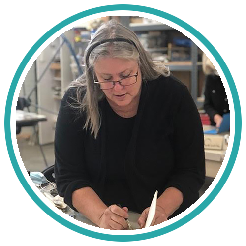 Roberta Lavadour‘s artist’s books and design bindings have been widely exhibited across the United States and beyond. Her exploration of the book form includes study in workshop settings with leaders in the field and more than 30 years of independent investigation. Her work is marked by a rampant curiosity and explores everything from estate sale finds to her tangled family history. She has presented at venues across the country, including Paper and Book Intensive, Focus on Book Arts, and the Guild of Book Workers Standards of Excellence Seminar.